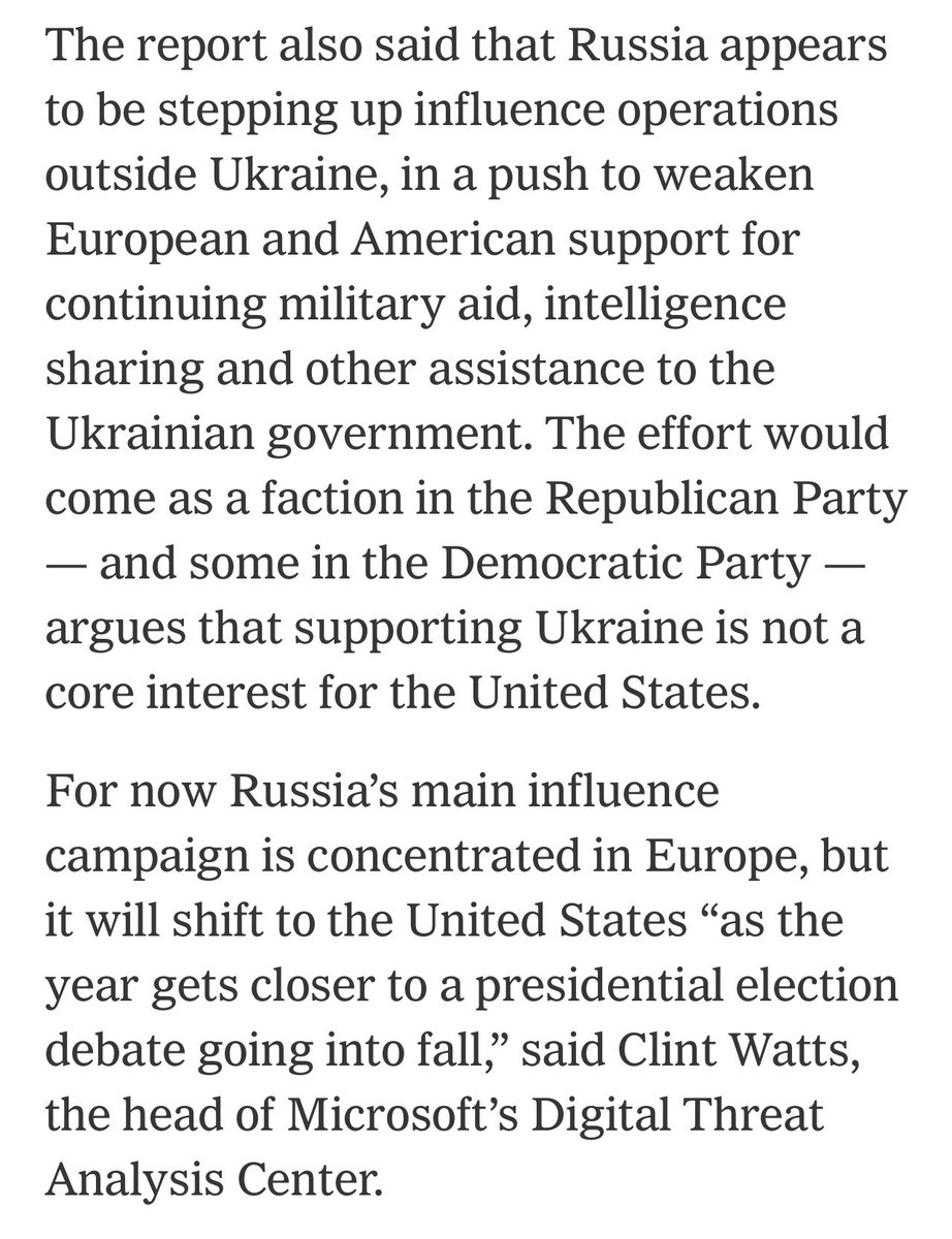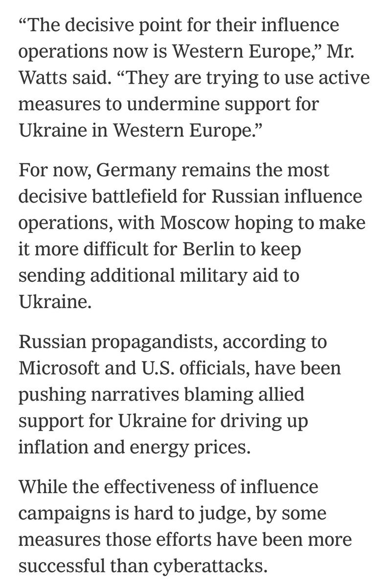 The NYT article by @julianbarnes@SangerNYT@MarcSantoraNYT does not mention Watts’s disinformation campaign, quote a critic of his analysis, or contain a different perspective. Watts’s report, and the article, appear to be pretext to smear critics of US support for Ukraine.
