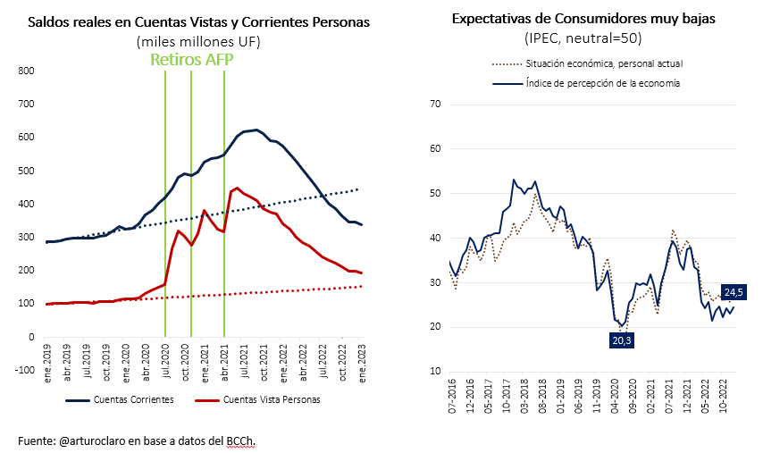 Confianza de los consumidores esta muy baja y el dinero de los retiros ya prácticamente se acabo, esto sumado a un mercado laboral débil con salarios reales cayendo indicaría q el consumo se debiese contraer.