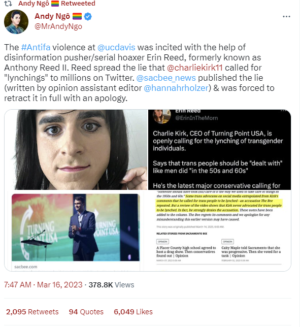 Lmao, Andy Ngo literally uses a picture from my 2nd day of transition in attempting to "blast" me for accurately pointing out Charlie Kirk's clear threat of violence in saying that men should "take care" of trans people "like in the 50s and 60s."