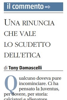 In prima pagina su Tuttosport l’ad Arrivabene celebra la “Juve totale: una squadra vincente per un marchio globale” che fa pure rima
