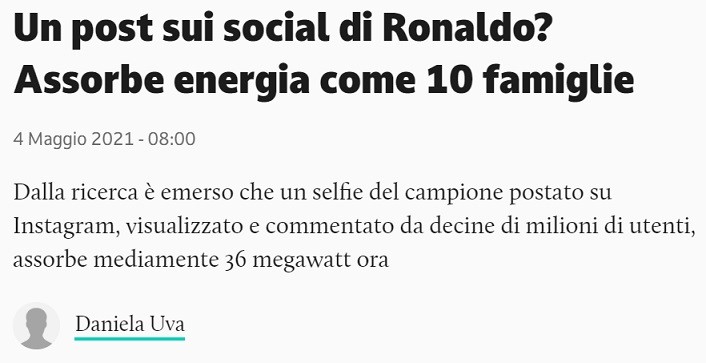 La classifica dei post sui social che assorbono più megawatt. Comanda Ronaldo, i suoi post consumano come 10 famiglie 🏆