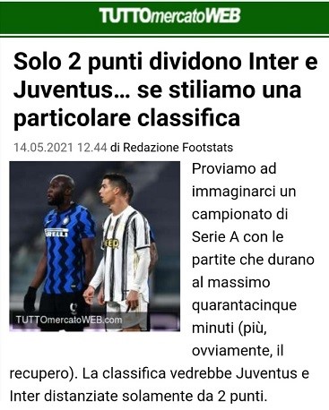 La classifica dei primi tempi: Juve a soli due punti dall'Inter, in quel momento inutilmente capolista nella classifica reale con più di 10 punti di distacco 🏅
