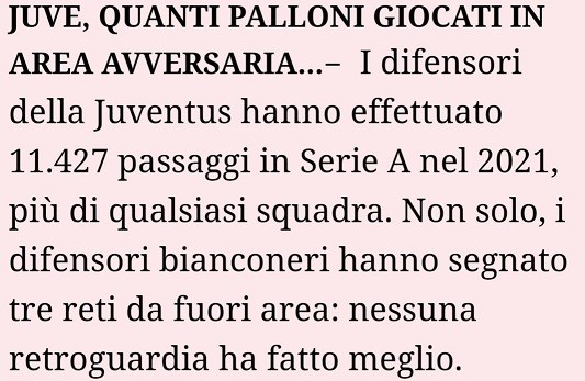 La classifica dei passaggi effettuati dai difensori, comanda la Juve. La classifica dei gol segnati da fuori area dai difensori, anche qui Juve prima 🏆🏆