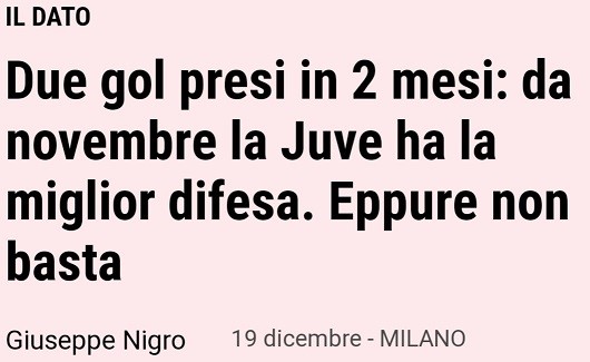 La classifica delle migliori difese però solo da novembre. Juve prima 🥇