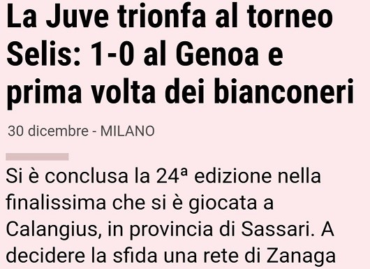 Il prestigioso torneo Selis di Calangius (paese che non esiste): è trionfo Juve 🏆