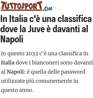 La classifica delle password più usate: Juve davanti al Napoli (capolista nell'inutile classifica reale della Serie A) 🏆