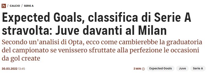 La classifica degli expected gol, Juve davanti al Milan vanamente capolista nella classifica reale 🥇