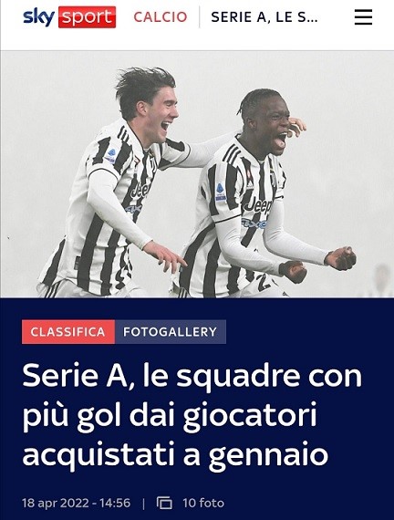La classifica delle squadre con più gol segnati dai giocatori acquistati a gennaio: Juve in testa🏆
