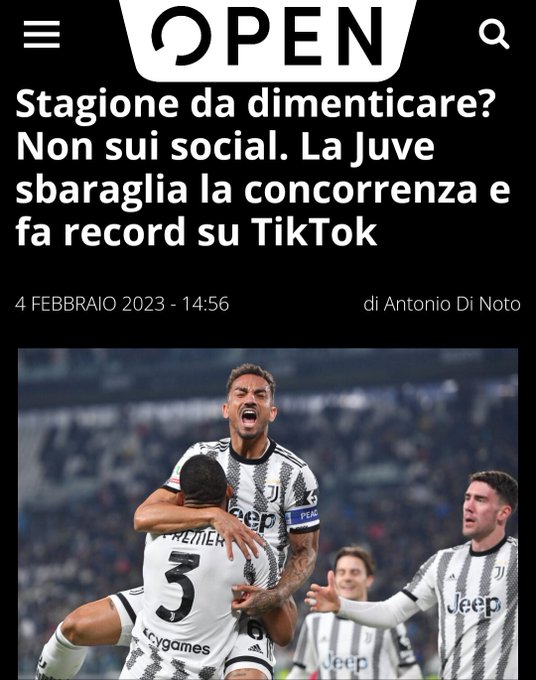 La classifica dei social, la Juve sbaraglia la concorrenza su TikTok, alla faccia dei risultati ottenuti in campo che contano il giusto 🥇