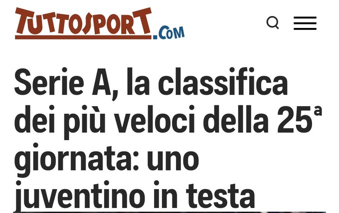 La classifica del giocatore più veloce della 25° giornata di Serie A, vince ancora uno juventino 🏎️🥇