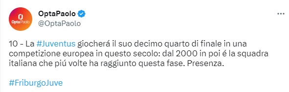 La classifica delle presenze delle squadre italiane ai quarti di una manifestazione europea dal 2000. Juve prima 🏆