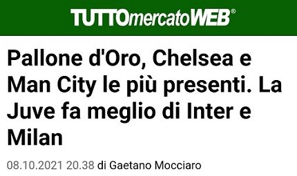 La classifica delle squadre italiane con più giocatori tra i 50 candidati al Pallone d'oro. Juve e Inter con lo stesso numero di giocatori (2), ma la Juve misteriosamente "fa meglio", forse per la classifica avulsa 🏆