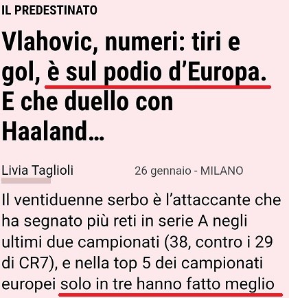Invece nei 5 principali campionati europei in tre hanno fatto meglio, ma nonostante questo Vlahovic è misteriosamente "sul podio d'Europa" 🏅🇪🇺