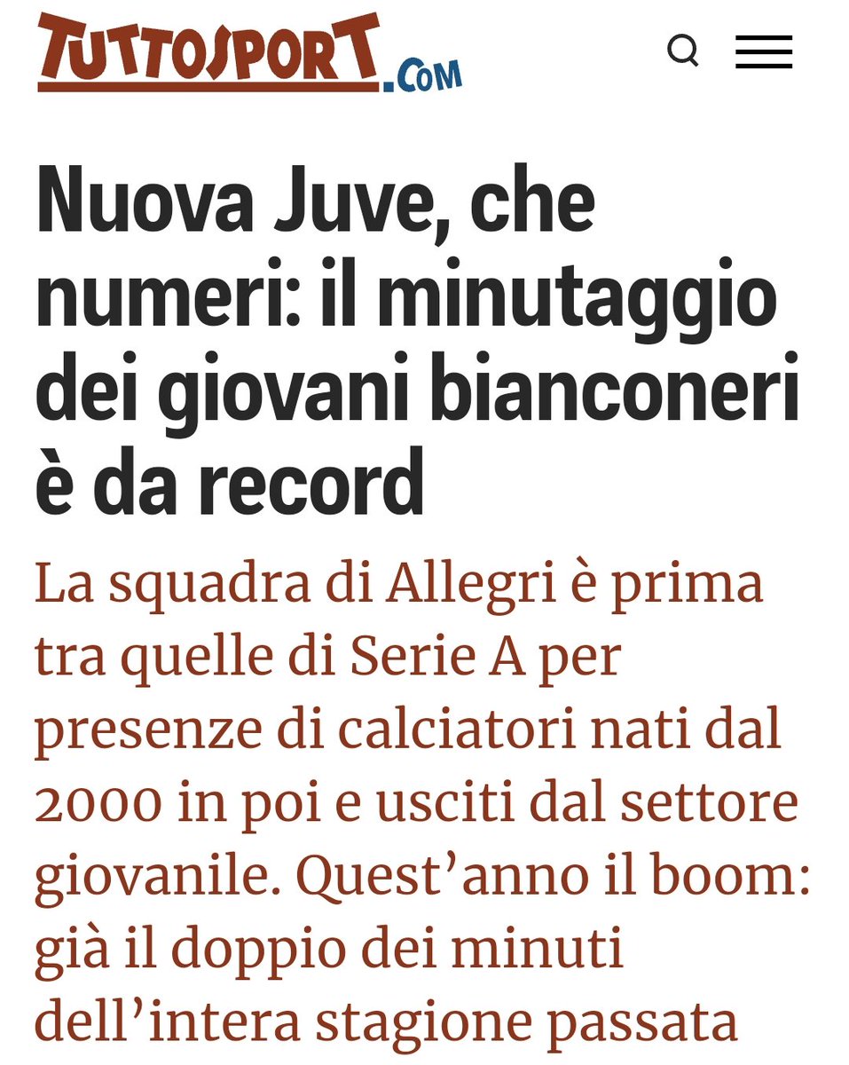 La classifica del minutaggio dei giocatori usciti dal vivaio però solo quelli nati dal 2000. Vince la Juve, con record 🏆