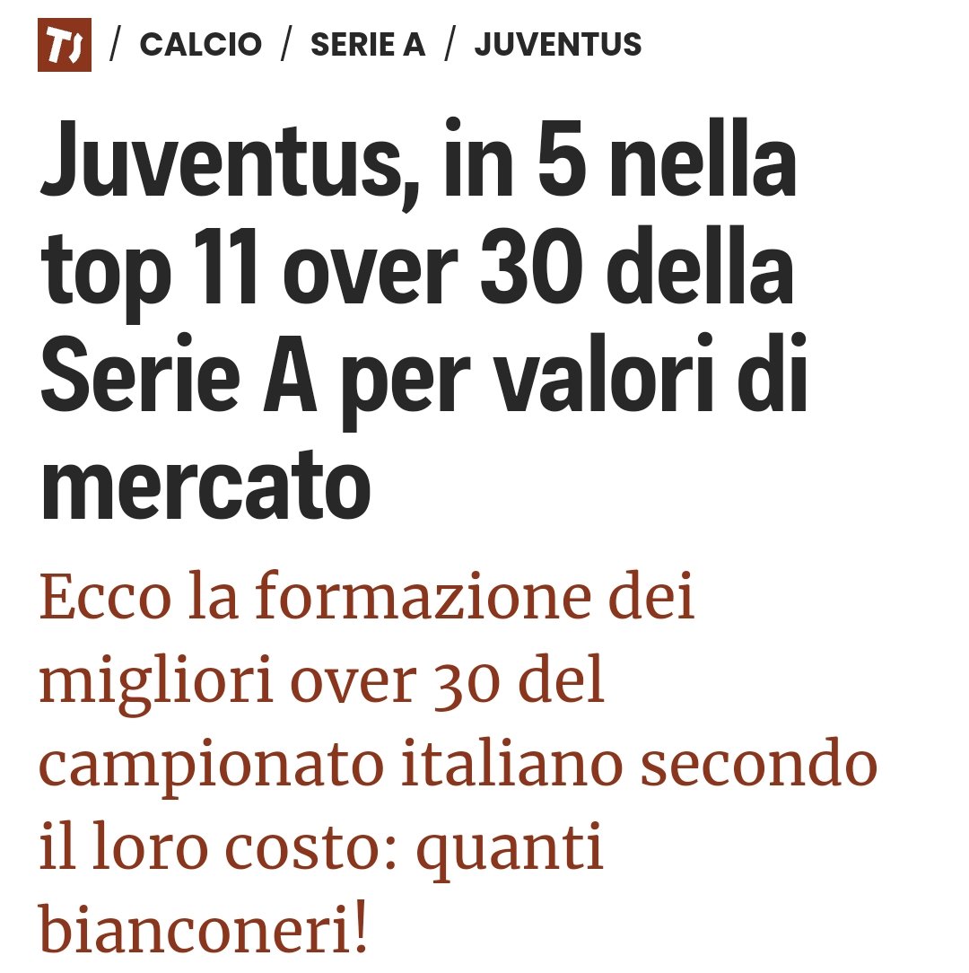 La classifica delle squadre con gli over 30 che hanno più valore di mercato. Comanda la Juve 🏆
