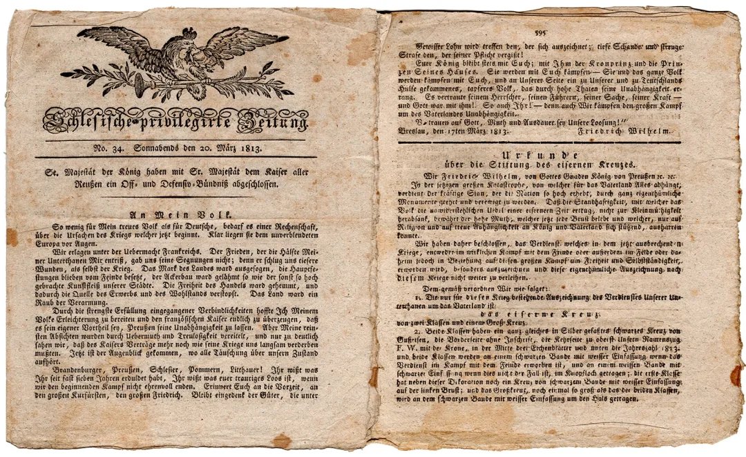 Frederick William officiated all of the documents alongside that creating the Iron Cross, drafted earlier on the 10th. It was the moment which his two months of sojourn in Breslau culminated in.