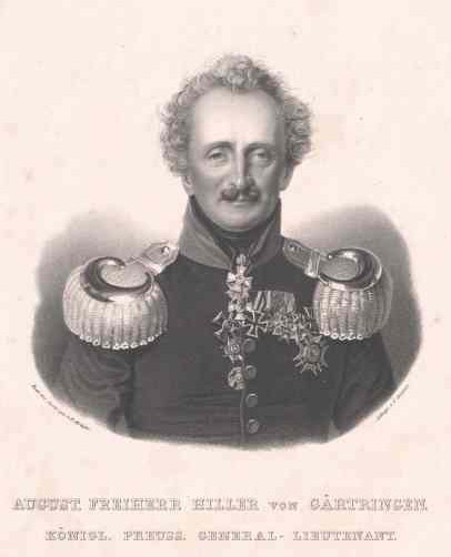 Major August Hiller von Gärtringen, introducing himself as the new Chief of Staff in place of Seydlitz, cheerfully greeted the general. Yorck, however, bitterly barked:
