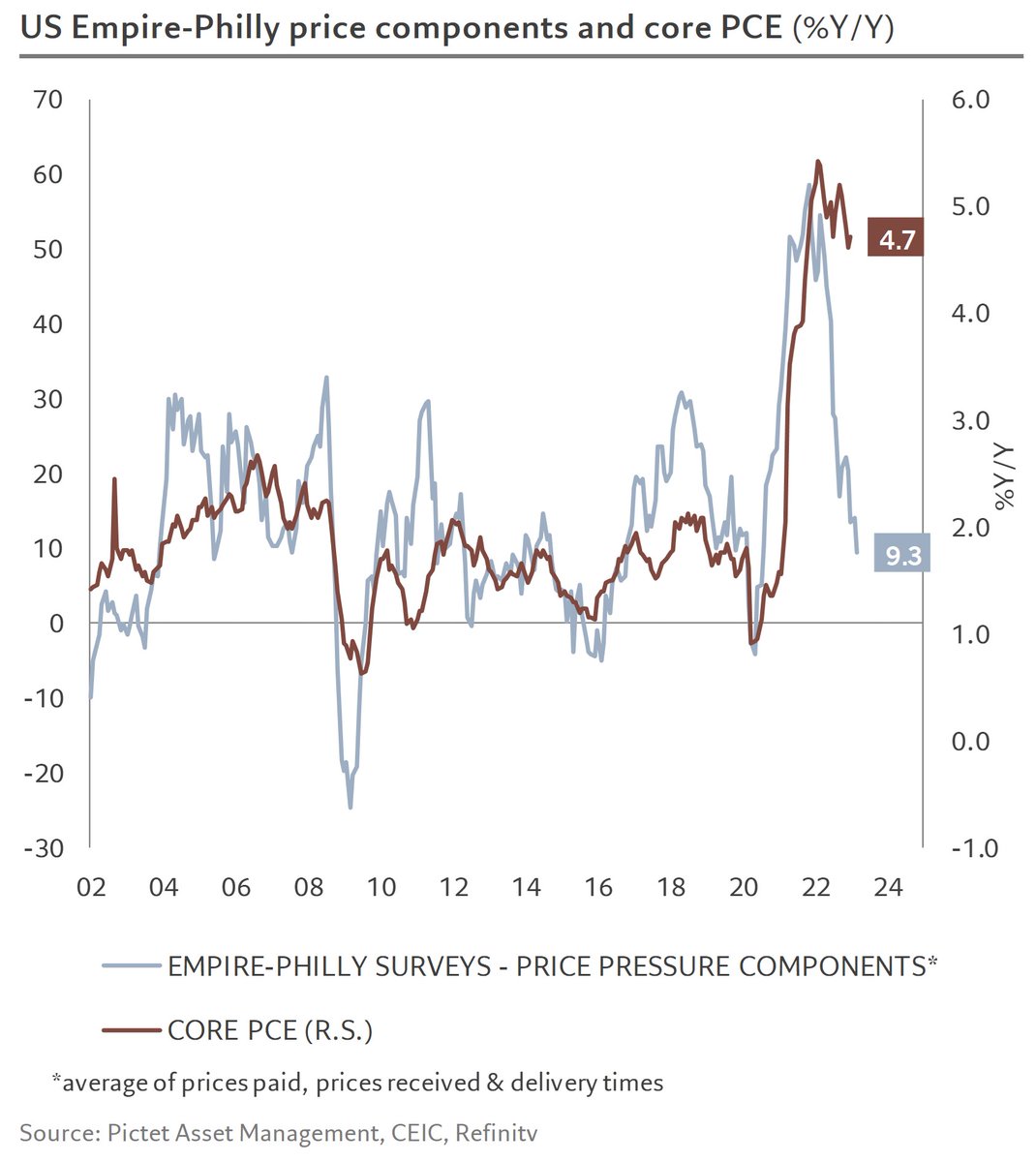 3/ √ The downward resistance is still due to the rise in rents, which accounts for more than 55% of the core CPI services and whose momentum rose slightly further (9.0% 3m/3m ann.). The one-year lag in rents over house prices points to a peak in Q2
