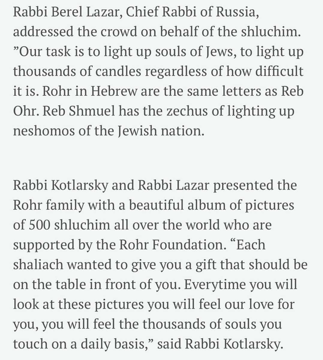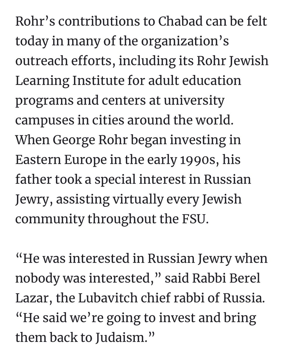 “Initiating the presence of, and partnering with the work of, emissaries of the Rebbe in hundreds of cities across the world, Mr. Rohr funded a veritable renaissance of Jewish life.”