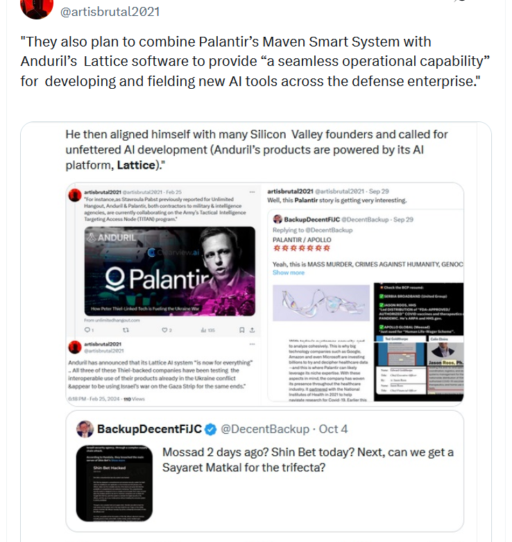 Palantir & Anduril announced a strategic partnership in Dec. 2024 to accelerate AI capabilities for national security, including integrating Palantir's AI Platform with Anduril's Lattice autonomous software for edge-to-cloud data flow in military ops.