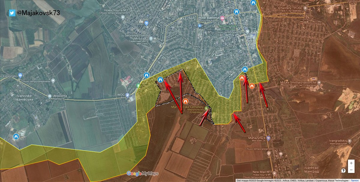 #ucraina nella zona sud da registrare lente avanzata nella zona del cimitero di bakhmut, ormai quasi sotto totale controllo russo