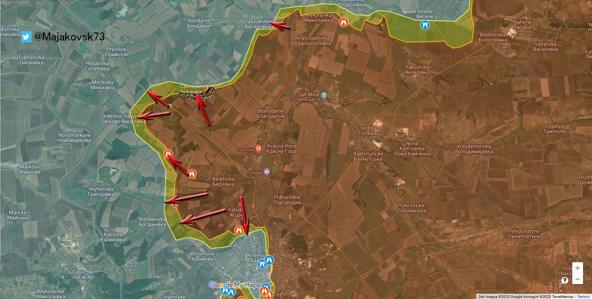 #ucraina Fronte di Bakhmut: si sono chiarite un pò di linee, avanzata russa più ampia sopra Orikhovo-Vasilyvka e verso Zalizianske. Aggiornata mappa