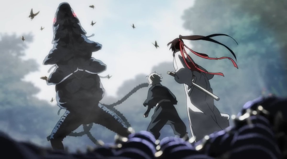 Hirotaka Mori como diretor, Yuji Kaneko diretor de arte, Kentaro Waki na fotografia e a Production I.G como estúdio. Isso está absurdamente forte! Construções de cena, cenários, animações de vários tipos. Tudo aqui se mostra muito competente. [1/2]