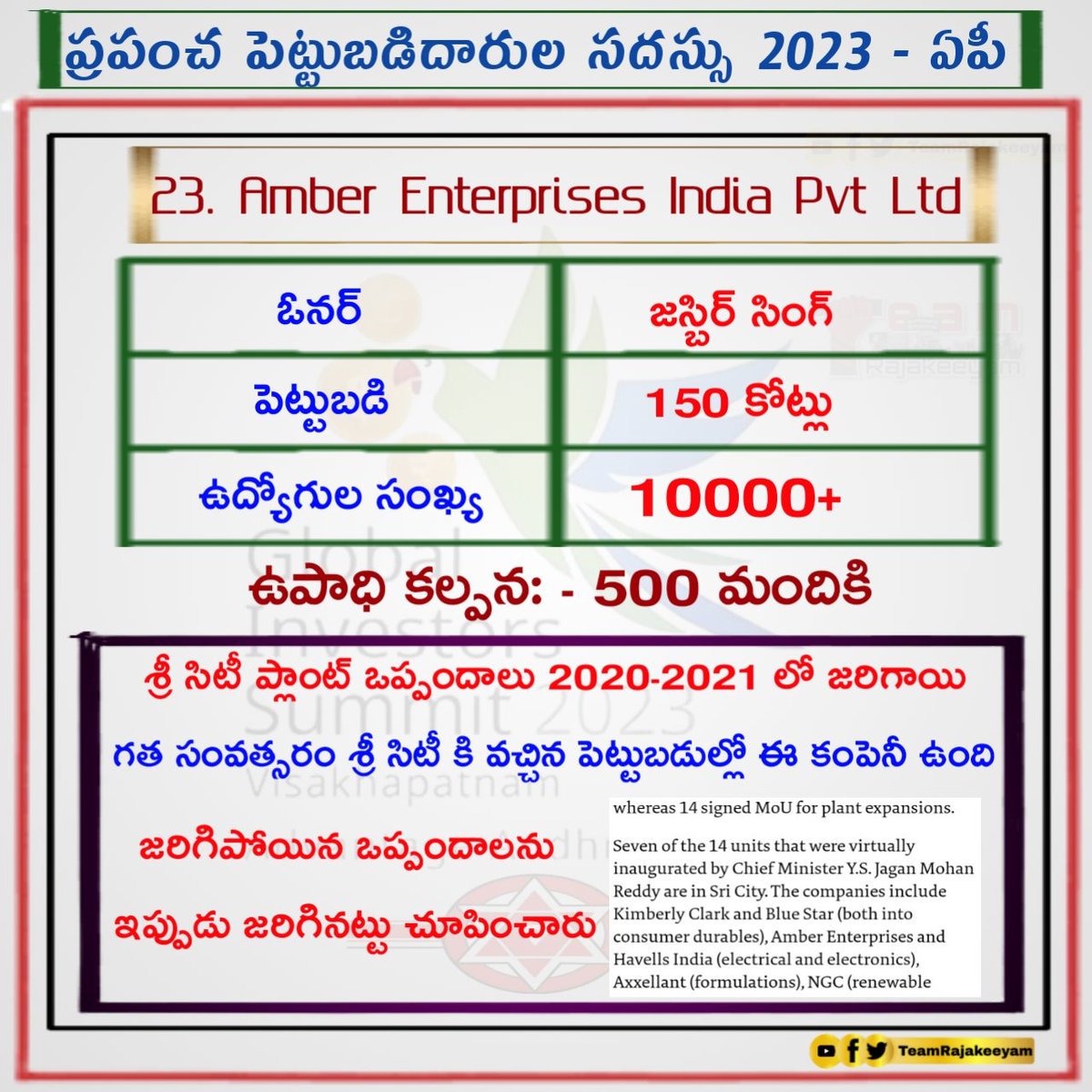 శ్రీ సిటీ లో 2020-21 లో అయిన ఒప్పందం ఇది