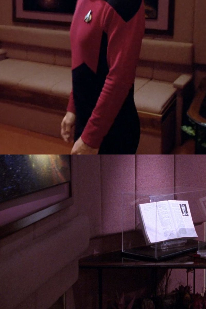The only time we see Picard actually taking a nap on his ready room couch is on the USS Enterprise-E in #StarTrekFirstContact. In all of season 1 and only once, we only see one person ever sitting on the couch (Dr. Crusher), but more about that tomorrow. 2/5