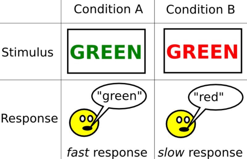 אפקט סטרופ מראה שציון שם הצבע שבו מודפסות אותיות לוקח יותר זמן כאשר המילה המורכבת מהאותיות שונה מהצבע שלהן עצמן ופחות זמן כאשר האותיות מרכיבות שם של צבע התואם לצבען. אז מה המטרה? לשחק לנו במוח ולמשוך את תשומת הלב שלנו 🔽