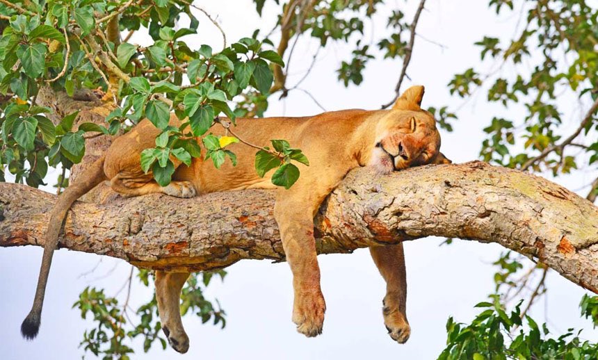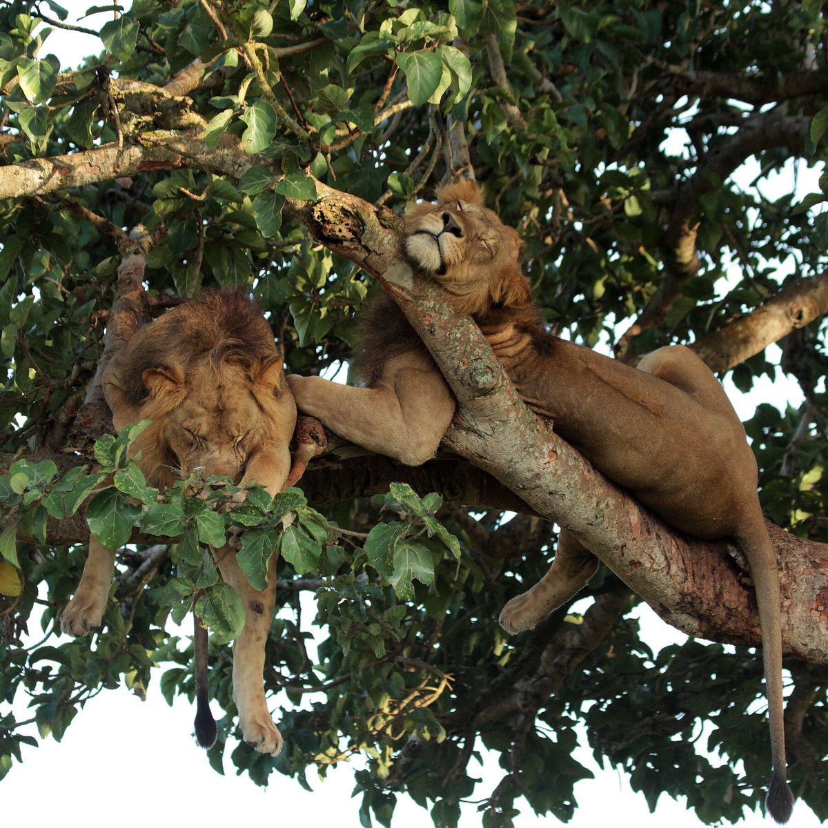 ראשית, טמפרטורה נמוכה יותר ושנית- התמודדות עם מעופפים עוקצים (בעיקר בעונה הגשומה) שלא עולים למעלה ונשארים בגובה נמוך. אין עוד מקומות בעולם פרט לאוגנדה שהתופעה הזאת קיימת. תופעה מעניינת שהאריות פיתחו היא תצפית מהעצים אל טרף פוטנציאלי וירידה ממנו רק כאשר הם בטווח מתאים למרדף.🔽