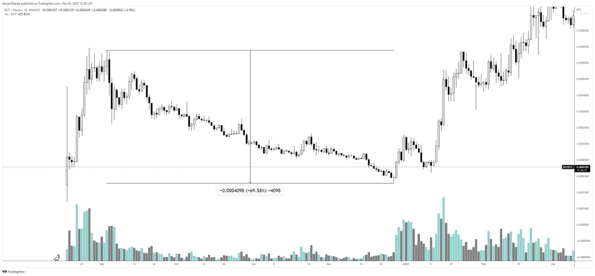 Even though alt/usd sometimes was stable (see $DOT), the overall alt/btc values died.