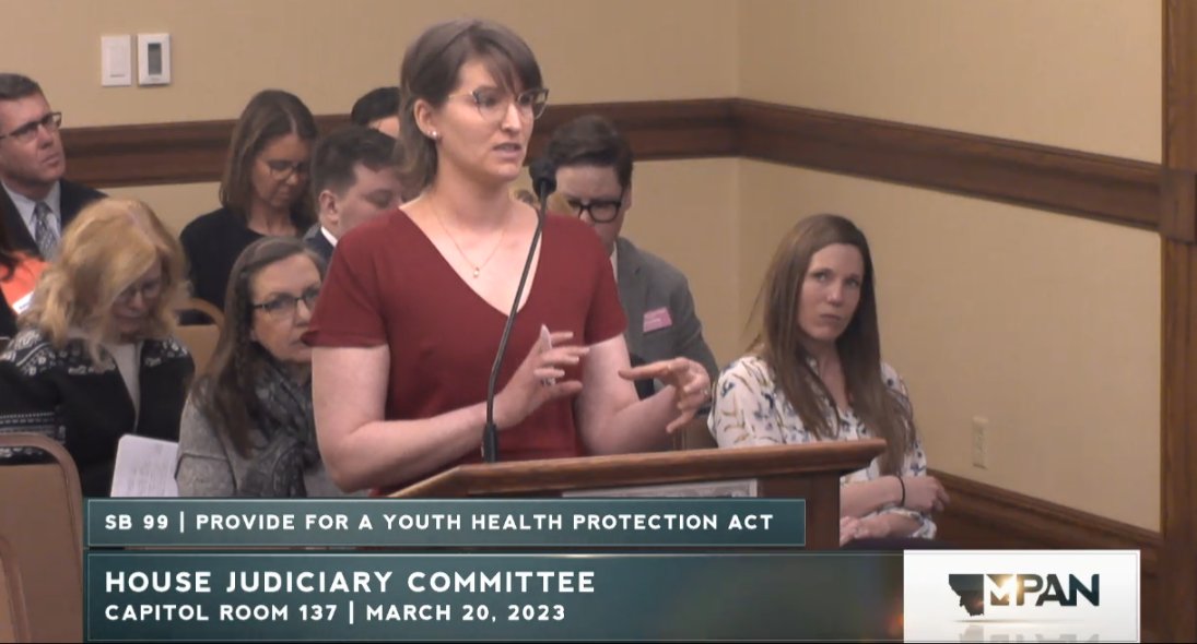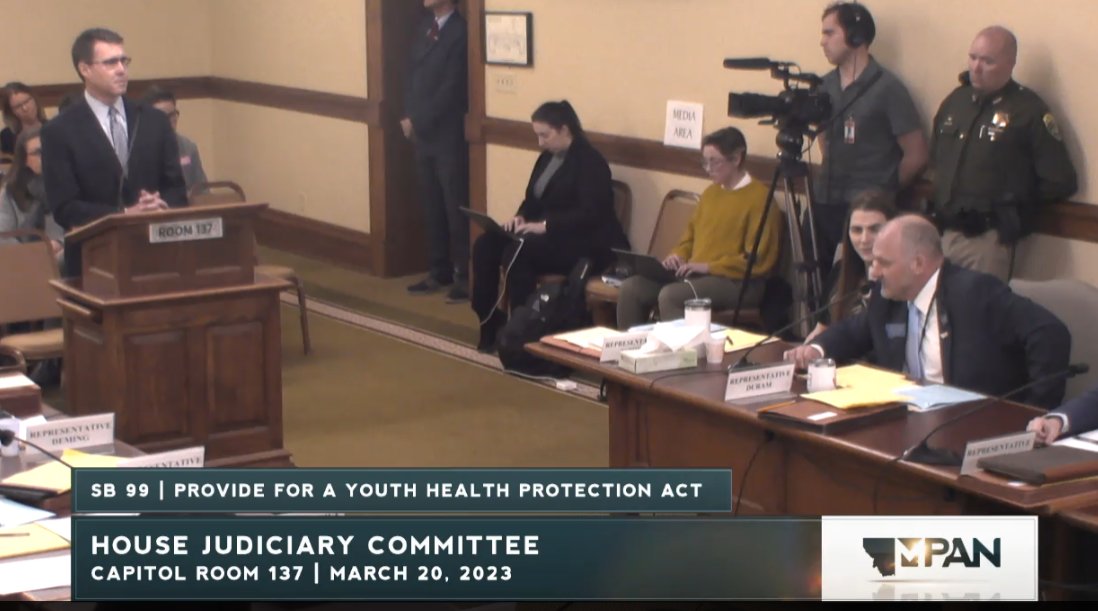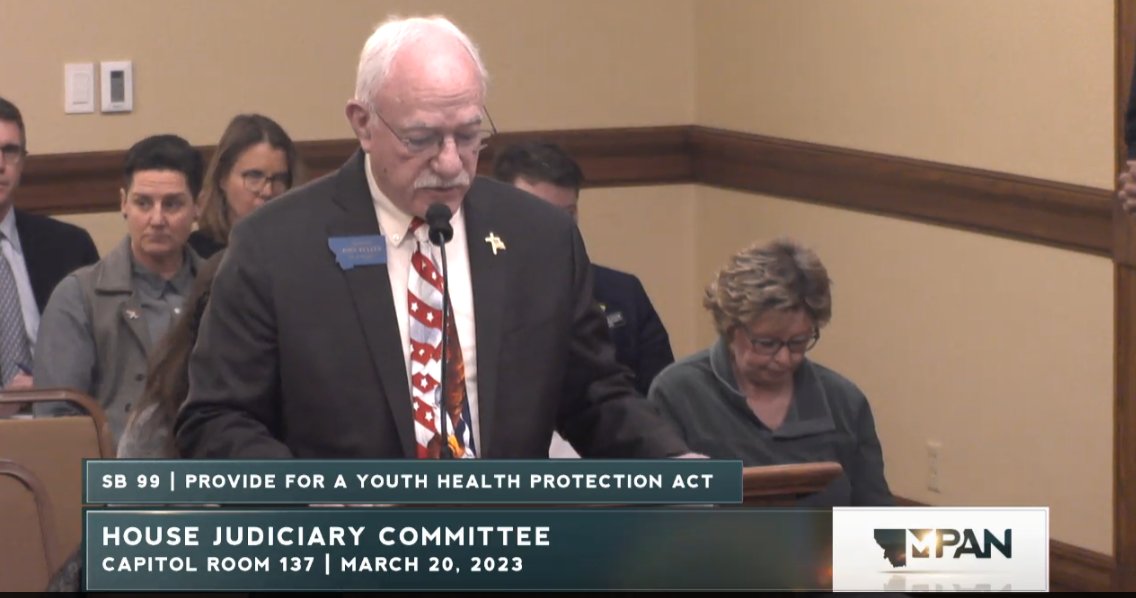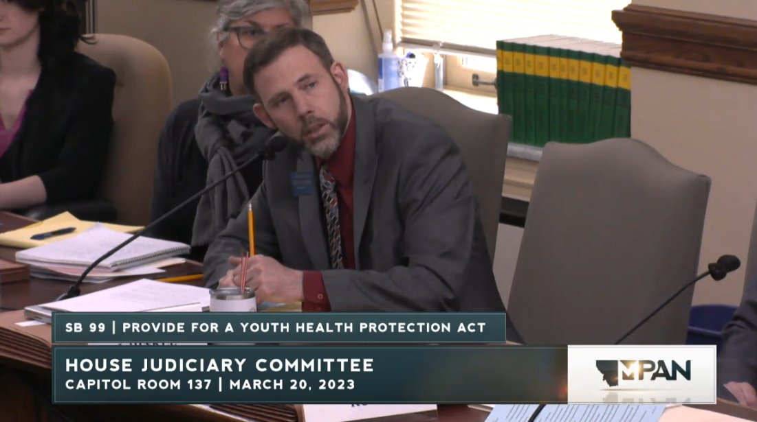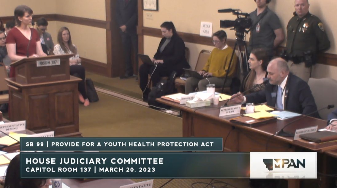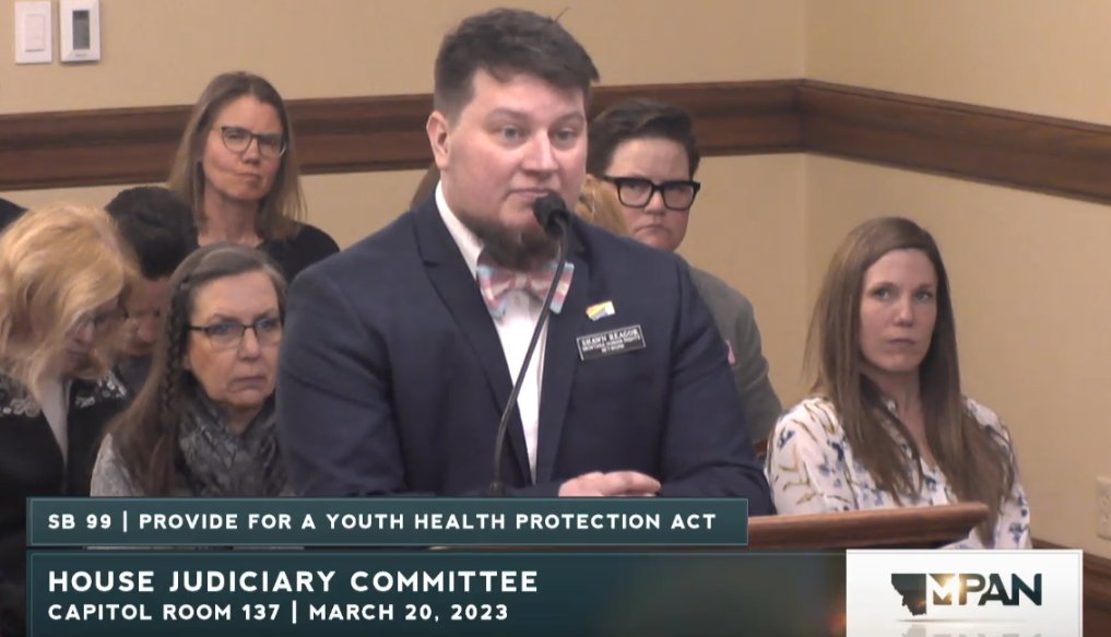 Happening now, Montana's Senate Judiciary is considering SB99, a bill that will result in forcible detransition of trans youth by withdrawing them from their care.