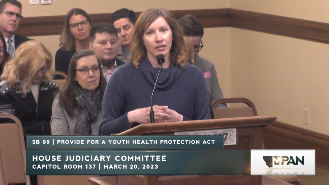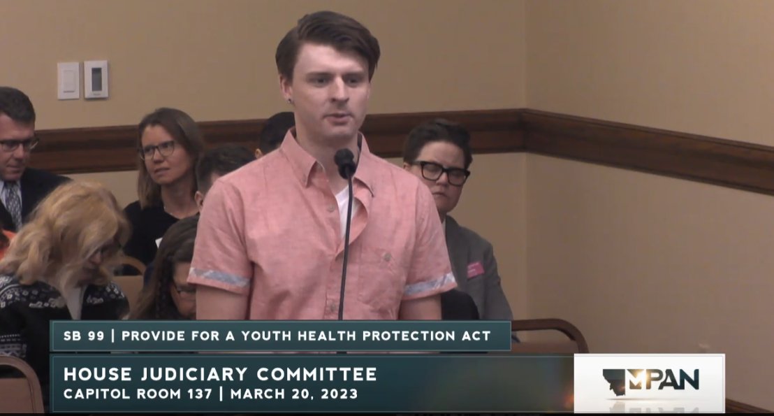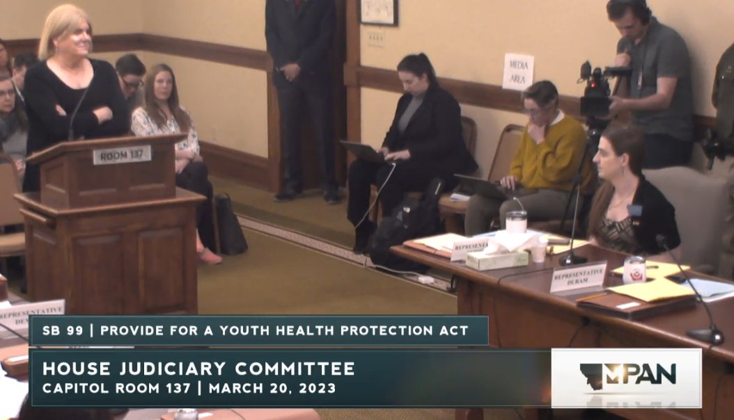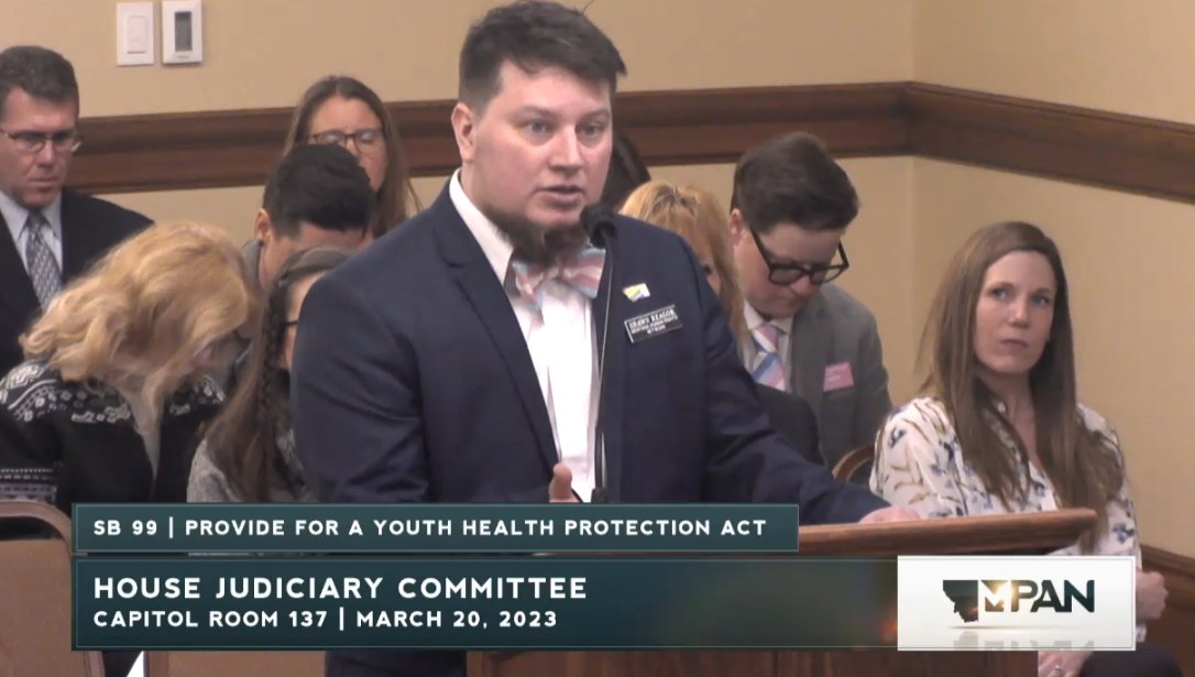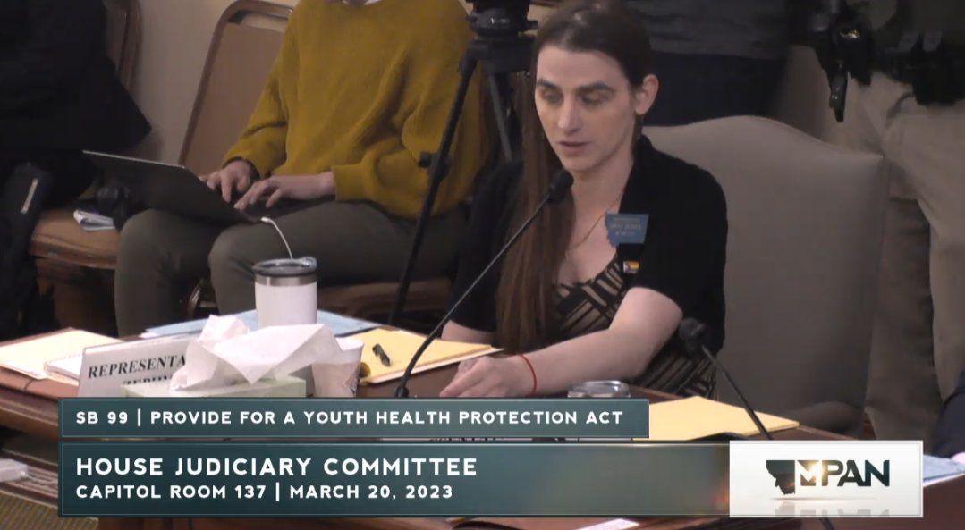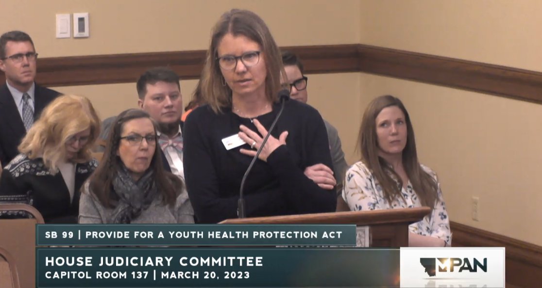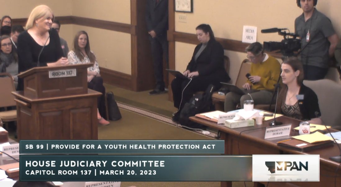 Happening now, Montana's Senate Judiciary is considering SB99, a bill that will result in forcible detransition of trans youth by withdrawing them from their care.