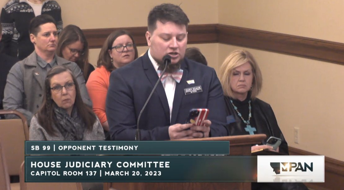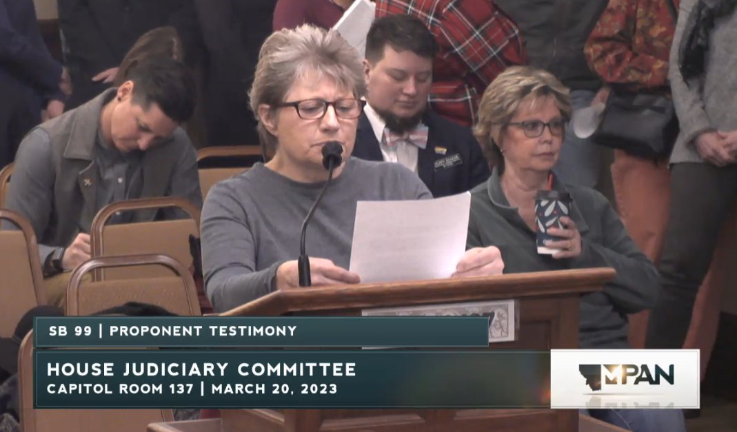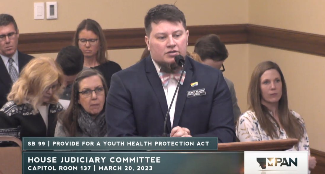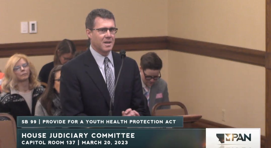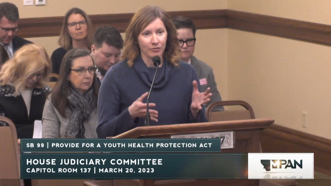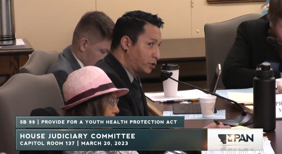 Happening now, Montana's Senate Judiciary is considering SB99, a bill that will result in forcible detransition of trans youth by withdrawing them from their care.