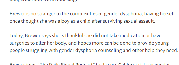 Ah yes, they have one detransitioner today, who states he was trans because he was molested.