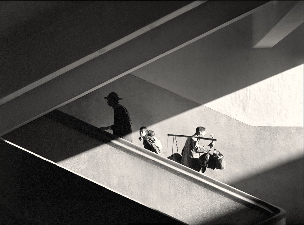 Las escaleras de Hong Kong era su lugar favorito para fotografiar la vida cotidiana de la ciudad. Los rayos de luz caían en el mismo ángulo de la inclinación formando siluetas andantes perfectas.