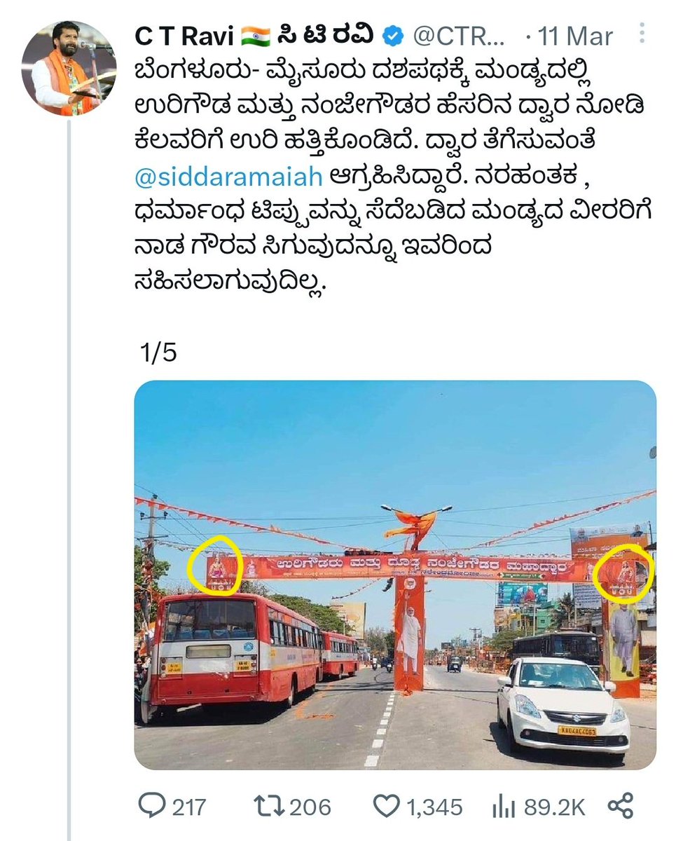 A banner flex welcoming PM Modi with fictional characters (Uri Gowda and Nanje Gowda) was put up in Mandya. Many BJP Politicians including @CTRavi_BJP@ShobhaBJP@drashwathcn R Ashok claimed that they both (Uri Gowda & Nanje Gowda) killed Tipu Sultan.