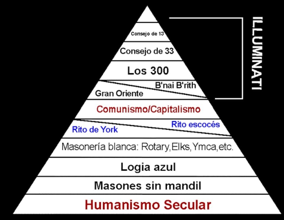 En la cúspide de la pirámide se encuentra El Consejo de Los 13 (Las 13 familias mas poderosas y dueñas del mundo, los del linaje particular)