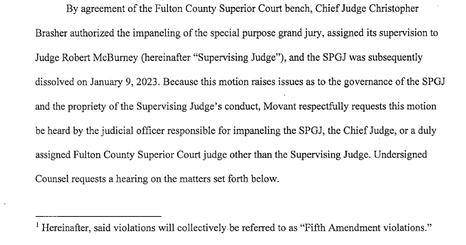 They are requesting that the Chief Judge hear the motion. Because this directly relates (in some ways) to the judge who supervised the SPGJ (Special Purpose Grand Jury), Trump doesn't want him to decide on it.