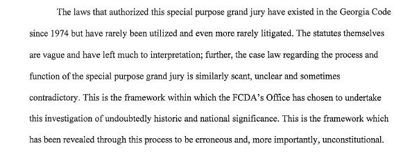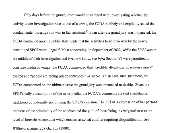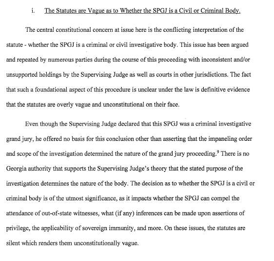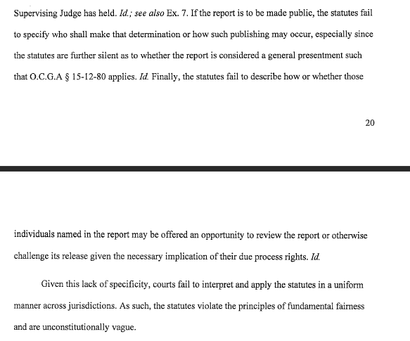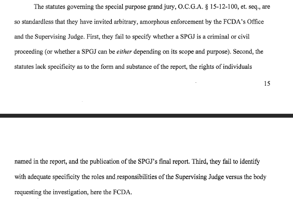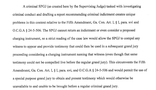 This craziness led to a flurry of out-of-state courts having to hop in and try to interpret GA law. Texas ruled that according to GA law, the SPGJ really only conducts civil investigations, buttressed (but not decided upon) by the fact that an SPGJ can't return indictments or… twitter.com/i/web/status/1…