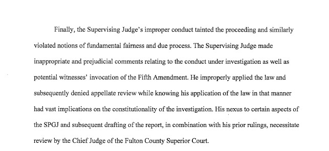 And finally, the judge who SUPERVISED this SCGJ acted improperly. His actions during, in decisions made about the report, and the prior rulings he has made during the case necessitate a review by the Chief Judge of the Superior Court.