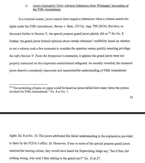 When 5th amendment rights were invoked, the SPGJ was instructed incorrectly on handling them. They also were subject to bias by the judge, who impugned anyone who invoked their 5th amendment rights. Read this screenshot, please.