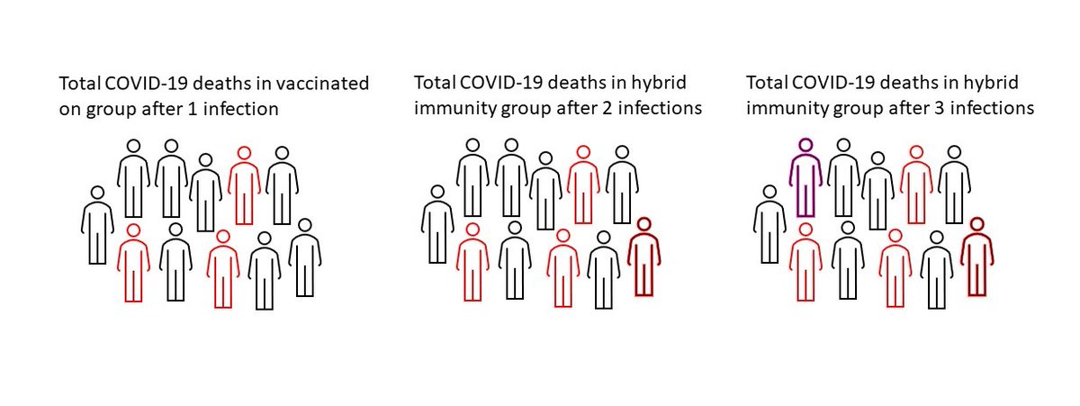 I decided to try to visually represent the concept of "hybrid immunity" to try to show why it's a misleading concept that has the overall effect of hiding the bodies and the magnitude of the damage covid infections leave behind. Here's what I mean🧵