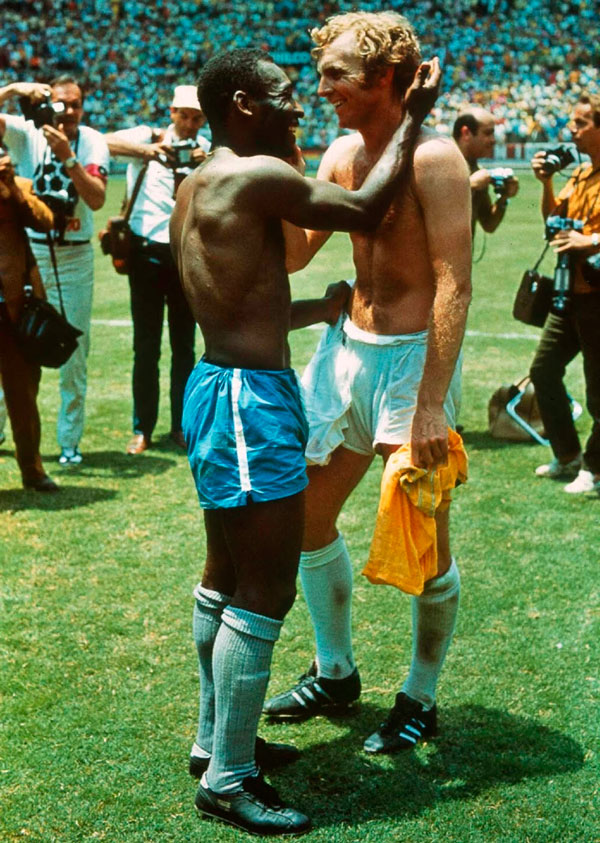 - John Varley, “Pele y Bobby Moore intercambian sus camisetas tras el partido en el que Brasil derrotó a Inglaterra en el Copa del Mundo”, Guadalajara, México, 7 de junio de 1970.