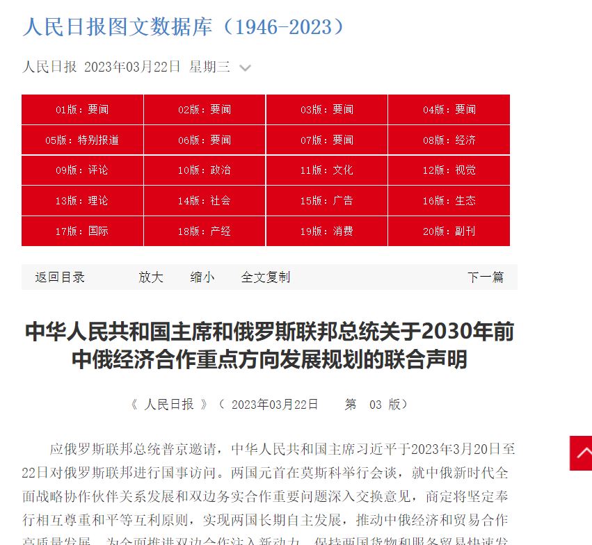 Innym dokumentem było wspólne oświadczenie prezydenta Chińskiej Republiki Ludowej i Prezydenta Federacji Rosyjskiej w sprawie planu rozwoju przed 2030 r. dotyczącego priorytetów we współpracy gospodarczej Chiny🇨🇳-Rosja🇷🇺