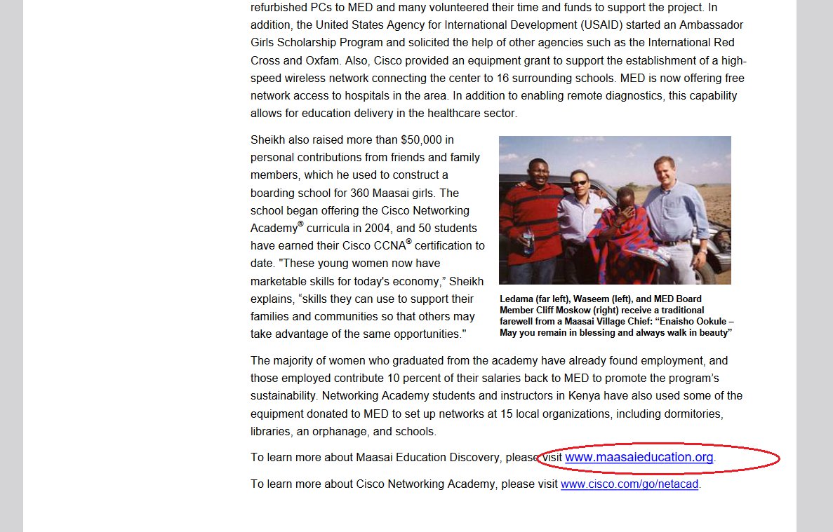 Board Member, visited the MED education resource center in Narok, Kenya"