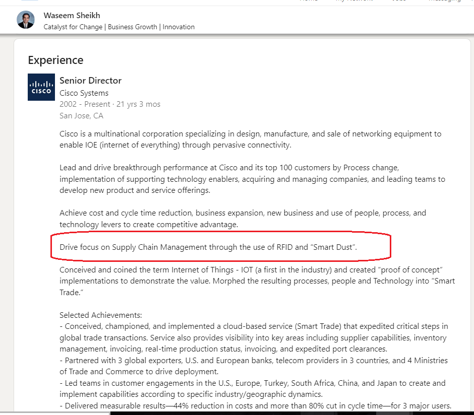A few years ago, Waseem Sheikh , Director of Cisco’s Internet Business Solutions Group and MED