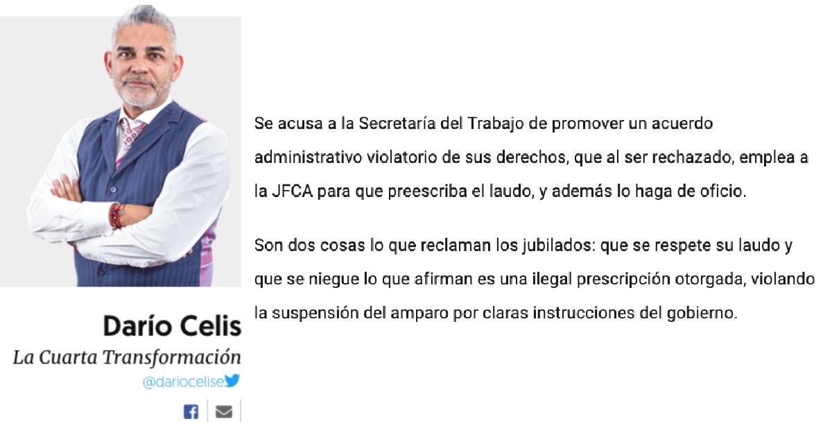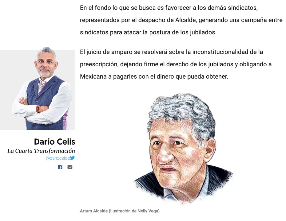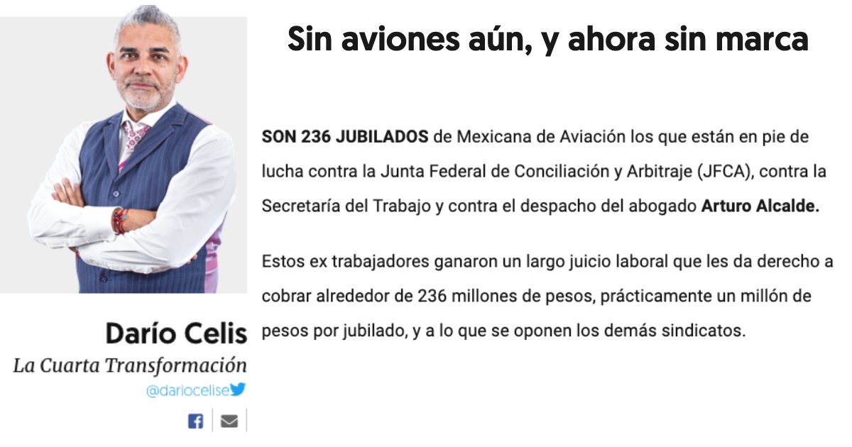 Son 236 jubilados de Mexicana de Aviación los que están en pie de lucha contra la Junta Federal de Conciliación y Arbitraje, contra la @STPS_mx y contra el despacho del abogado Arturo Alcalde. bit.ly/3ndF7G0