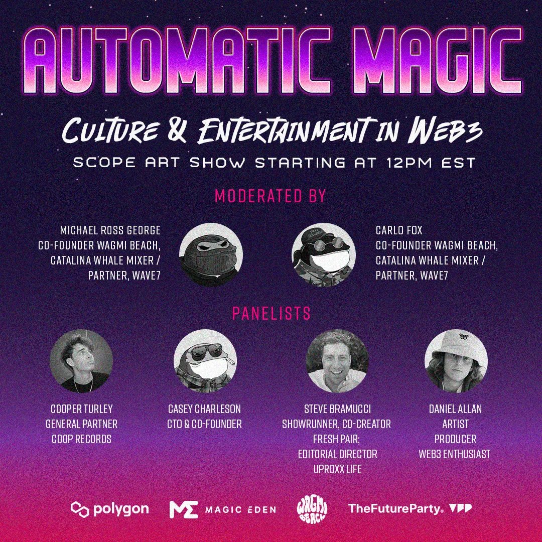 In the backdrop of the world-renowned @SCOPEArtShow, listen to incredible speakers discuss the future of web3 and the intersection of NFTs, activism, entertainment, and business.